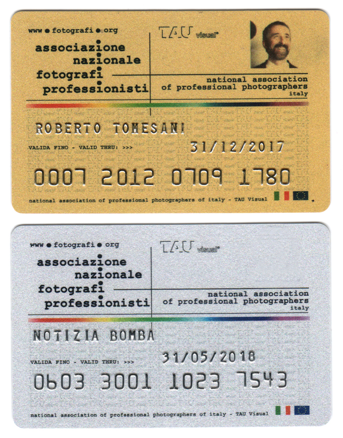 Se - per tuoi motivi - hai tuttavia piacere di avere una tessera associativa che agevoli la tua identificazione per mezzo di una tua piccola fototessera, puoi chiederne la doppia personalizzazione.